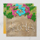 The Hawaiian Luau Party Invitation can be used for birthdays, backyard bbqs, bridal showers, baby showers, rehearsal dinners and much more. The invitation side of the design features Hawaiian hibiscus flowers in fuchsia, pink and turquoise, on a sandy-colored background. The front of the card features the same flowers, with a picture of sea shells arranged into the word "Aloha." Customize the text and design to fit your party!