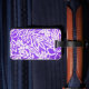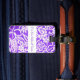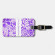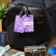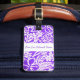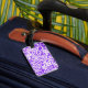 Custom luggage tag shown with a cute purple colored hawaiian print with text. Customize this tag or buy as is.