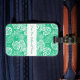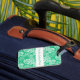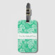 Custom luggage tag shown with a very tropical Hawaiian print with text.