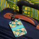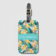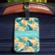 Custom luggage tag shown with a very tropical Hawaiian print with text.