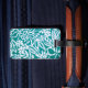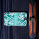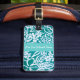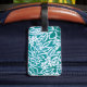 Custom luggage tag shown with a cute teal colored hawaiian print with text. Customize this tag or buy as is.