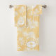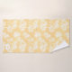 Bring tropical vibes to your home with this classic Hawaiian-inspired bath towel design. Featuring lush white palm trees silhouetted against a summery background in shades of golden yellow, this pattern captures the timeless beauty of island life. Perfect for beach-themed bathrooms or summer cottage, this versatile design adds a touch of the tropics to your decor. Customize the pattern size and personalize text to make it uniquely yours. Search ID1093 to see other products with this design.