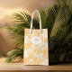Bring tropical vibes to your day with this classic Hawaiian-inspired gift bag design. Featuring lush white palm trees silhouetted against a summery background in sunny golden yellow, this pattern captures the timeless beauty of island life. Perfect for personalized gift-giving or add your logo to this versatile design to add a touch of the tropics to your gift. Customize the pattern size and personalize text to make it uniquely yours. Search ID1093 to see other products with this design.