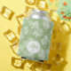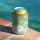 Bring tropical vibes to your home with this classic Hawaiian-inspired can cooler design. Featuring lush white palm trees silhouetted against a summery background in shades of green, this pattern captures the timeless beauty of island life. Perfect for beach-themed events, luau-themed parties or summer cottage, this versatile design adds a touch of the tropics to your table. Customize the pattern size and personalize text to make it uniquely yours. Search ID1093 to see other products with this design.