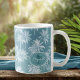 Bring tropical vibes to your home with this classic Hawaiian-inspired coffee mug design. Featuring lush white palm trees silhouetted against a summery background in shades of teal, this pattern captures the timeless beauty of island life. Perfect for beach-themed kitchens, luau-themed parties or summer cottage, this versatile design adds a touch of the tropics to your decor. Customize the pattern size and personalize text to make it uniquely yours. Search ID1093 to see other products with this design.
