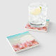 Tropical themed stone coaster with pink plumeria flowers and a big white sand dollar. Pretty blue ocean water is the background image.