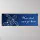 Hawaiian Sea Turtle White on Blue Beach Wedding Poster