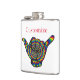 Well made flask, a little better than I had expected. Flask came in clear plastic box which gave it a nice presentation when I took it out of the zazzle packaging. Image is not printed on flask but on sticker. Don't know how this will hold up I haven't used it yet. This would make a Great gift! I plan to purchase more for friends! Cheers. I thought a little brighter than computer. Very crisp, writing wasn't