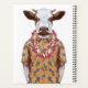 This design features a portrait of cow in summer shirt with a Hawaiian lei.