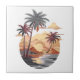 Hawaiian sunset with palm tree. ceramic tile