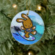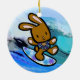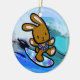 Hawaiian Surfing Bunny Holiday Cartoon Ceramic Ornament
