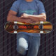 Grab the Tikiboard and grab some frontside air with this custom designed flaming metal and Tiki skateboard design!