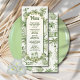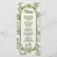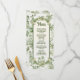 Hawaiian Toile de jouy Wedding Menu with hula girl, palms, pig, and hut. All wording can be changed. Colors of green and light cream