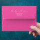 These elegant yet simple envelopes feature the words "baby shower" in white over a vibrant fuchsia pink background. The envelope opens to reveal a unique watercolor tropical hibiscus flowers and monstera palm leaves in vibrant shades of pink and green. Use the template fields to add your custom return address. A botanical choice for Hawaiian themed baby showers and tropical summer parties. To see the matching suite visit www.zazzle.com/dotellabelle
