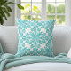 Aloha! Add a tropical touch to your living room, bedroom or beach house with our pretty island inspired throw pillow. Inspired by the patterns found on traditional Hawaiian quilts, this design features an allover tile pattern of breezy tropical leaves in beachy shades of seaglass and turquoise watercolor. Design repeats on back.