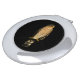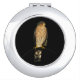 This compact mirror features a Sharp-Shinned Hawk who is perched on the top of a bird feeder hoping to catch a meal. He has a hunter's stare. His yellow talons and orange eyes are prominent. He has lovely rust and cream bands on his breast, white and black striped tail feathers, and a gray back. This hawk's prey is mostly small birds. Although the "Sharpie" is the smallest hawk in North America, he is a very fierce predator.