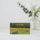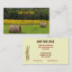 This business card advertising hay for sale features a lovely autumn landscape. Summer is over and two bales of hay are drying in a green meadow bordering a field of brilliant yellow goldenrod. Next comes the woods. The trees are mostly green but some fall colors of red and yellow are starting to show. All text can be customized to fit your personal business needs.