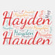 Hayden. Show and wear this popular beautiful female first name designed as colorful wordcloud made of horizontal and vertical cursive hand lettering typography in different sizes and adorable fresh colors. Wear your positive american name or show the world whom you love or adore. Merch with this soft text artwork is a great present, not only in womens history month, or birthday gift.