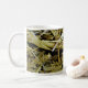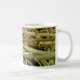 This is a closeup photo of a haystack. This coffee mug is a great way to warm up your day.