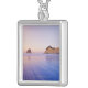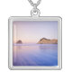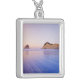 Haystack Rock At Dawn Blurred Blue Purple Waves Silver Plated Necklace