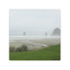This original photograph features a foggy morning at Cannon Beach, Oregon. The image captures Haystack Rock as the tide is receding. Image ©K. McIver, 2016. All rights reserved.