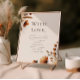 A thoughtful and cheery wedding sign that says "Thank you for being here, with hearts full of cheer For making this day, oh so dear We love you all, with all our hearts As we embark, on this new start."