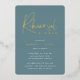 Invite guests to celebrate the happy couple with these modern and minimal rehearsal dinner invitations with luxe foil accents. Simple design features "rehearsal dinner" in casual gold foil handwritten script, with your event details beneath on a dusty teal blue background.