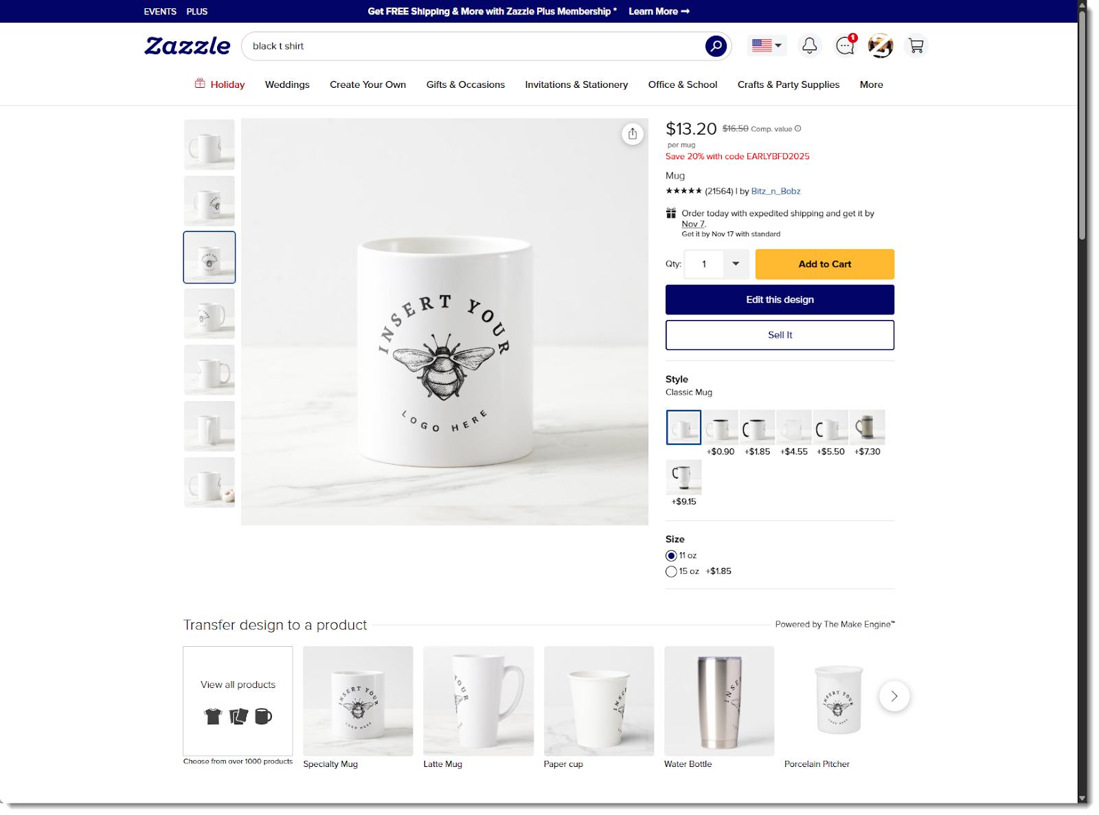 If the suggested blank products are not what you’re looking for, you can click on “View all Products” and type in the product you want to transfer this design onto. For example, “Mug”.