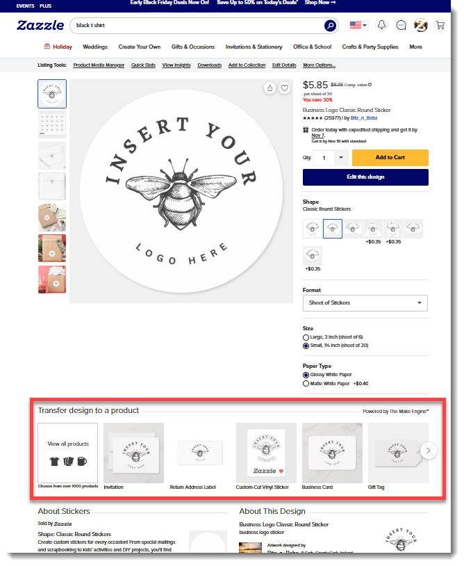 Open the product page with the old product where the design currently lives. Scroll down to the area called ‘About This Design’ and you’ll see a link for ‘Transfer this design’ to another product.