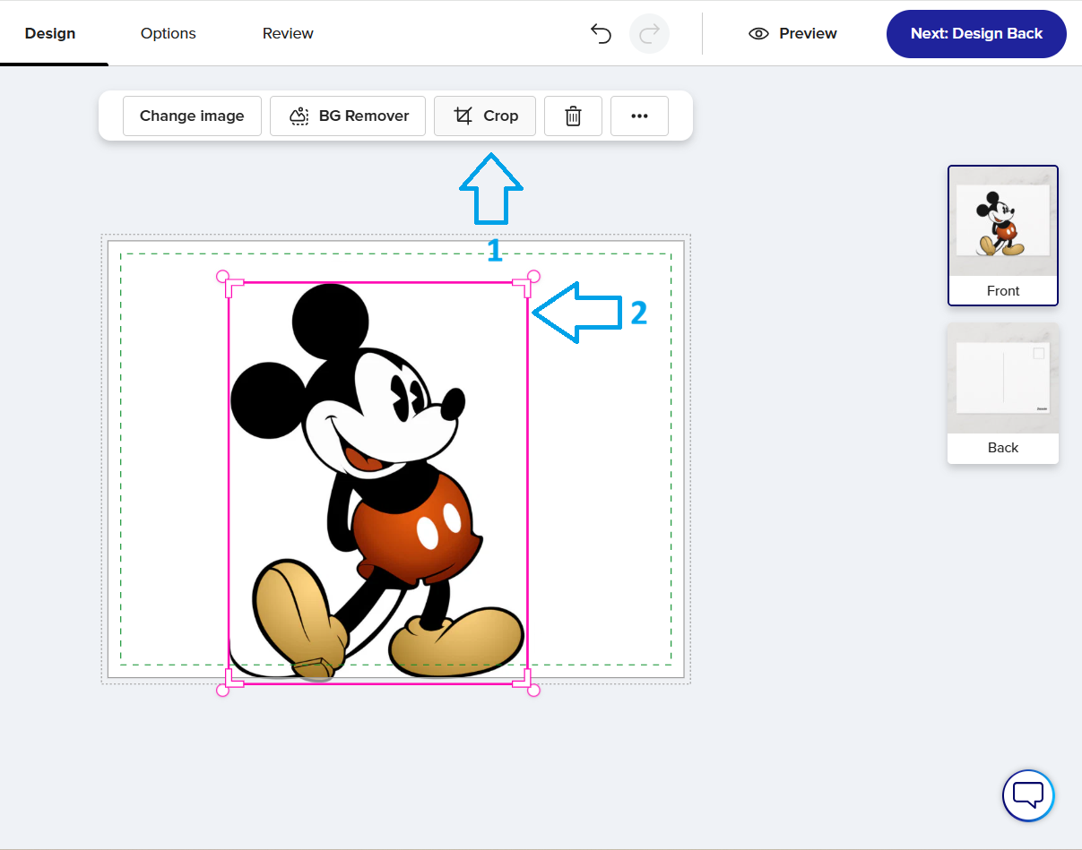 - Fit – Adjust the image to fit entirely within the design area without cropping.