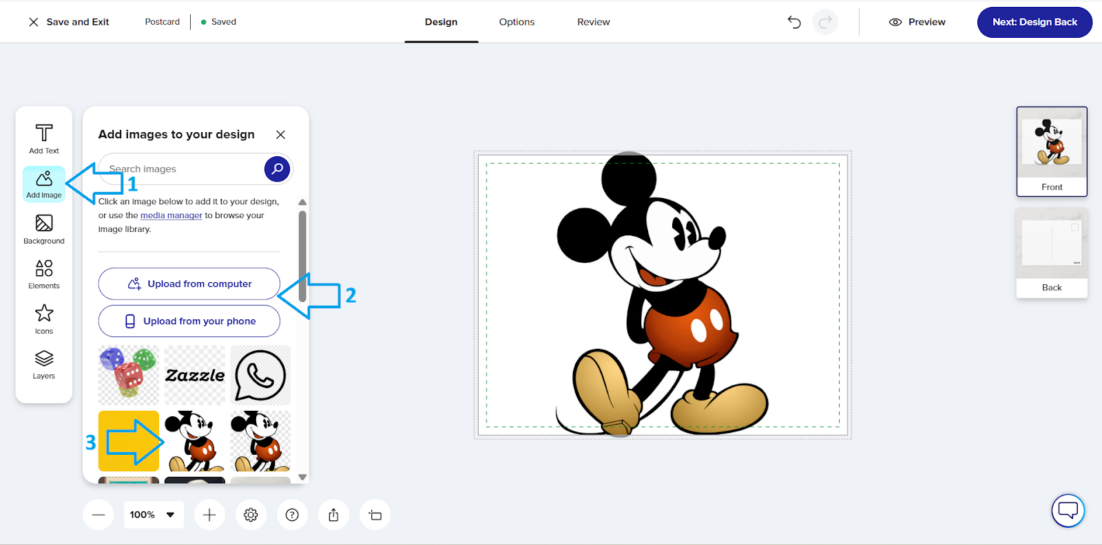Below are the steps to upload your own images on the Desktop Design Tool: