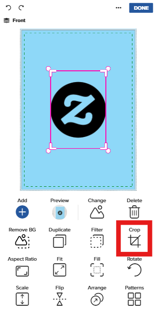 When you select an image in the Zazzle Design Tool, the toolbar provides a variety of options to customize your image. Here’s a breakdown of each feature: