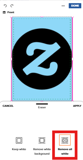 2. From the toolbar below the image, select ‘Remove Background’ OR tap ‘Eraser” and then tap the ‘Remove all white’ or ‘Remove white background’.