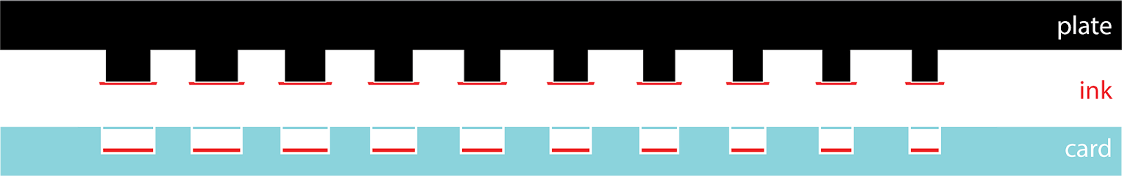 - The pressure creates a slight impression (a depression) in the paper where the raised areas of the plate have compressed the fibers. **Please consider that there might be a slight impression on the back of the card for digital design elements you add there.