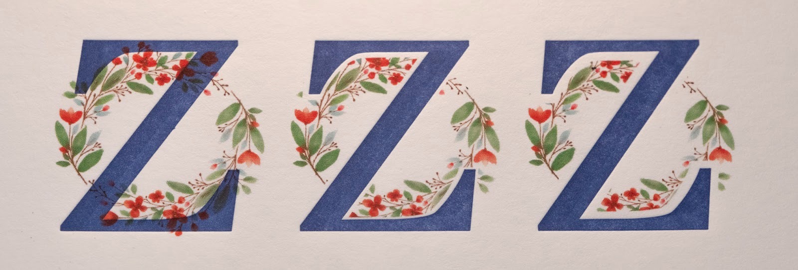 Visual Example: Demonstrates a digital floral element (CMYK) and a letterpress 'Z' (blue).