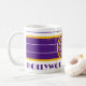 Coffee Mug 11oz. white with purple and gold concentric-circles design with "HOLLYWOOD, CALIFORNIA CENTER OF THE UNIVERSE" and "HOLLYWOOD, CALIFORNIA" at the bottom. With the Great Seal of California in the center. This design is a shout-out to the incomparable city, Hollywood, California.