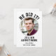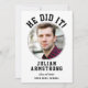 This minimalist graduation card features a bold “HE DID IT!” headline paired with a timeless layout that keeps the focus on your photo and name.