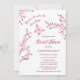 This bridal shower invitation features the text: "Because he makes her heart flutter " and a hot pink butterfly and cherry blossoms on a white background. Romantic bridal shower invitation in an elegant calligraphic script.