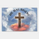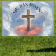 He Has Risen Rugged Cross With Clouds Yard Sign