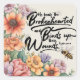 This vibrant art design bursts with brilliantly colored florals, capturing the essence of nature's beauty. Delicate petals of pinks, yellows, purple and blues intertwine, creating a lush garden scene that feels alive and inviting. Amongst the flowers flutters a charming bee, symbolizing the connection between nature and industriousness. Complementing the vivid imagery, the decorative typography elegantly showcases the verse Psalm 147:3, which reads, "He heals the brokenhearted and binds up their wounds." The font style is both graceful and whimsical, harmonizing with the overall floral theme, making this piece a perfect blend of inspiration, beauty, and tranquility for any space.