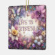 Experience the beauty of faith with our Christian Easter ornament adorned in watercolor florals. Lilacs, butterflies, purple flowers, daffodils and a Scripture verse from Luke come together to convey the religious significance of Easter. Share the joyous message with this gorgeous Easter decor– He is risen!