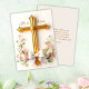 Celebrate the joy of Easter with this beautifully designed "He Is Risen" Christian greeting card. Featuring a luxurious gold cross, delicate spring flowers, pastel Easter eggs, and an elegant bow, this flat holiday card is perfect for sharing the message of faith and hope with loved ones. The reverse side includes a heartfelt Easter greeting, making it ideal for friends, family, church members, and Christian communities. Whether you're sending blessings to those near or far, this elegant religious Easter card is a meaningful way to express love and faith during this sacred season.