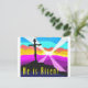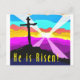 "He is Risen" and that he is Jesus. This is a wonderful religious design that features many bright colors. A rae of light shines on an old rugged cross. Image property of GospelGifs