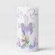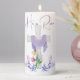 This is a pillar candle with an Easter cross draped with cloth, and flowers surrounding it. May be personalized and fonts and images can be changed as well.
