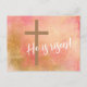 Dawn colors of coral pink and gold rough texture background with a simple cross and the traditional Easter greeting: "He is risen!" Inside is the answering greeting, "He is risen indeed". These familiar words testify to your joy and faith. Plenty of room within the card for your personal note. You can customize and personalize the text. Colors, the message, even the type of font used- just use the personalize or design tool to make the card to and say what expresses your Easter greetings.