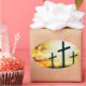 Gorgeous sunset illustration of Easter! There is no Christianity without the cross. Jesus went through torture, crucifixion, death, burial, a glorious resurrection & now seats at the right hand of God. We have an empty cross because Jesus is risen from the dead!
