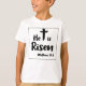 He Is Risen in black typography and it features a black cross symbol. This design is based on Matthew 28:6. This would be perfect for an Easter Sunday shirt! Give as a religious Easter gift or keep for yourself! It is perfect for family Easter shirt ideas. It is available in various styles and colors. There are also matching designs for the whole family - check out the collection in our shop by clicking our shop button. It is also available in white script, just make sure that you are happy with the way the color of the script stands out with the color shirt that you choose.