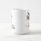 This Easter themed mug has a pink and purple spring flower wreath borders along the edge on a bright white background. In the center is a cross with a Bible and a spring floral bouquet with the verse "He is Risen."