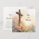 Celebrate the hope and renewal of Easter with this beautifully illustrated Christian greeting card. Featuring a wooden cross adorned with spring flowers and lilies, set against a soft sunrise sky, this watercolor design reflects the peace, faith, and promise of the resurrection.