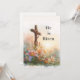 Celebrate the hope and renewal of Easter with this beautifully illustrated Christian greeting card. Featuring a wooden cross adorned with spring flowers and lilies, set against a soft sunrise sky, this watercolor design reflects the peace, faith, and promise of the resurrection.